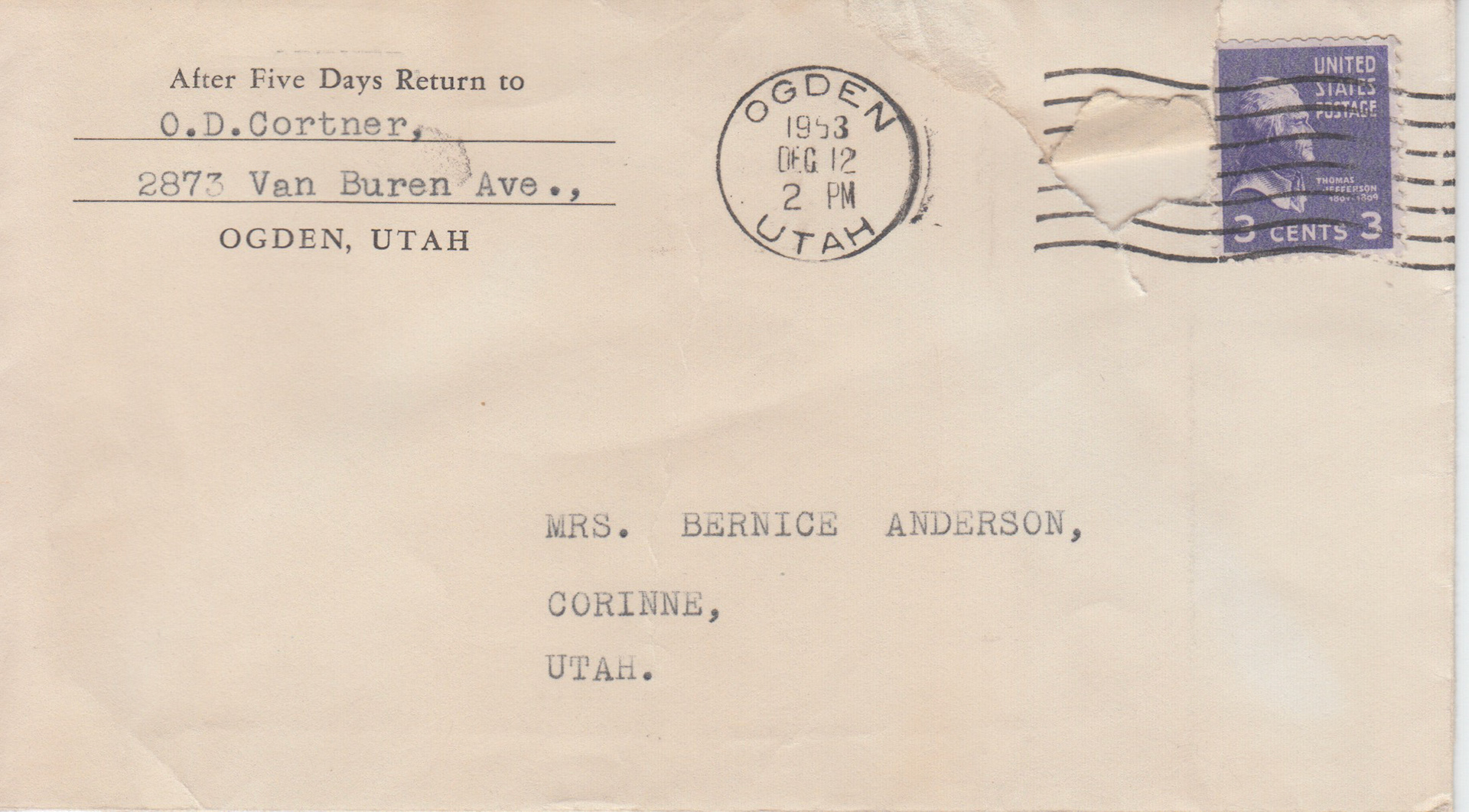 Envelope from Box Elder Chamber with Where the Last Spike was Driven brochure. Bernice Gibbs Anderson Collection, NPS