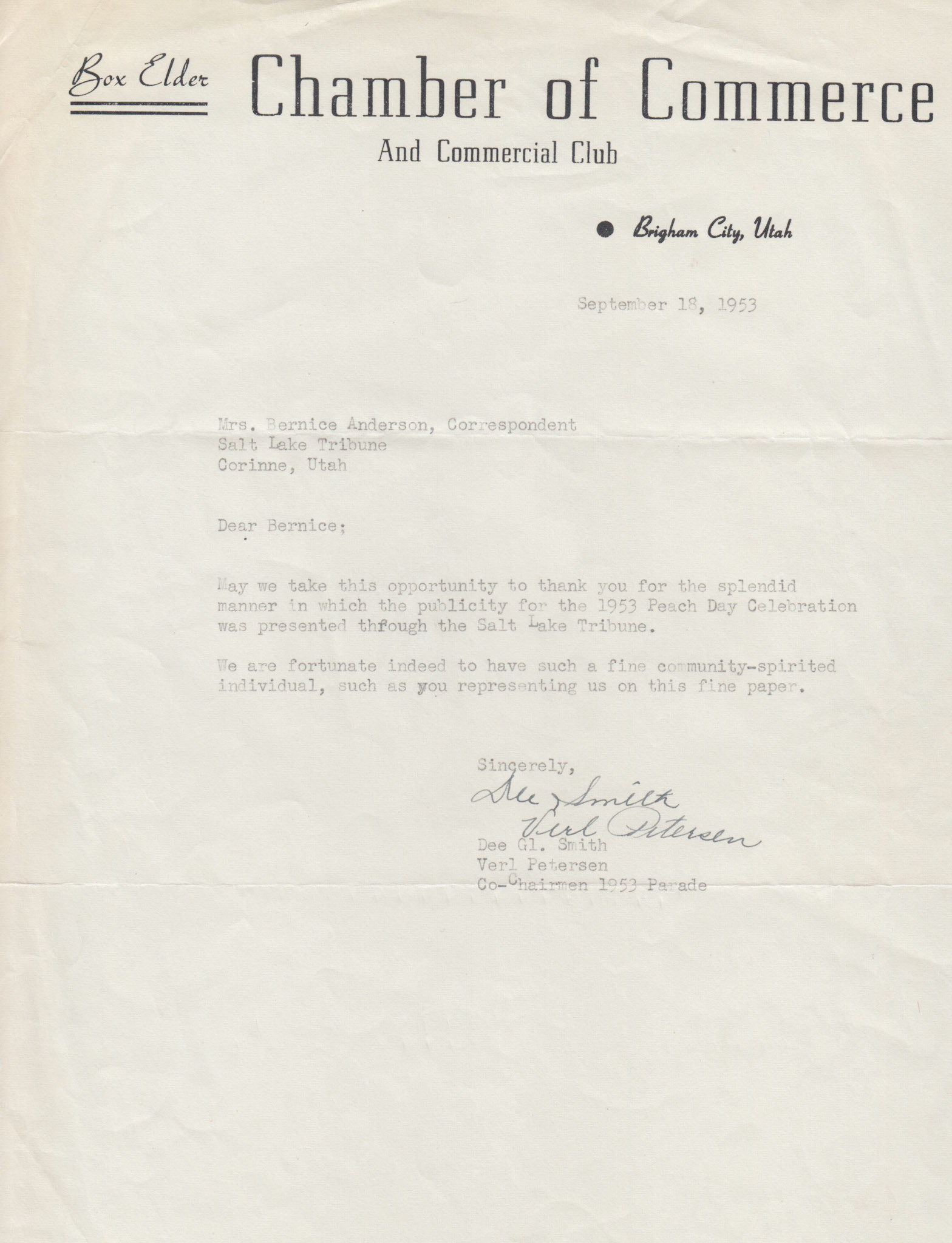 SLC Chamber of Commerce letter, 1952, page 2. Bernice Gibbs Anderson Collection, NPS